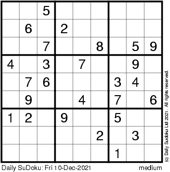 The Daily SuDoku: Fri 10-Dec-2021