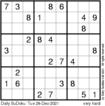 The Daily SuDoku: Tue 28-Dec-2021