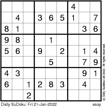 The Daily SuDoku: Fri 21-Jan-2022