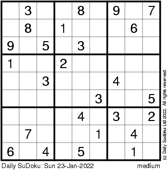 The Daily SuDoku: Sun 23-Jan-2022