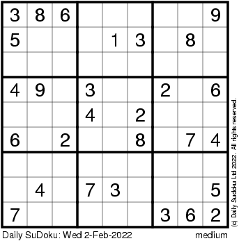 The Daily SuDoku: Wed 2-Feb-2022
