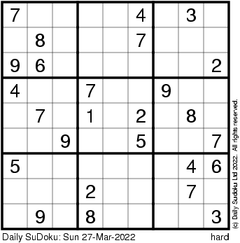The Daily SuDoku: Sun 27-Mar-2022