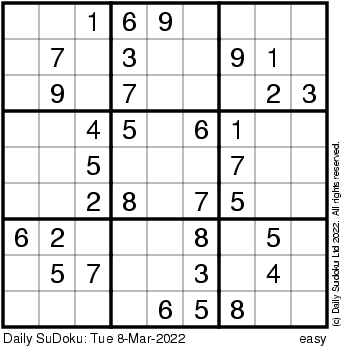 The Daily SuDoku: Tue 8-Mar-2022