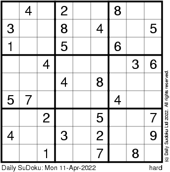 The Daily SuDoku: Mon 11-Apr-2022