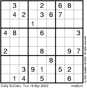 The Daily SuDoku: Tue 19-Apr-2022