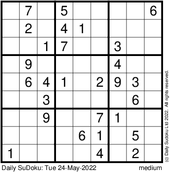 The Daily SuDoku: Tue 24-May-2022