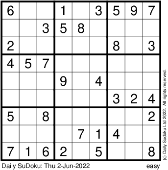 The Daily SuDoku: Thu 2-Jun-2022
