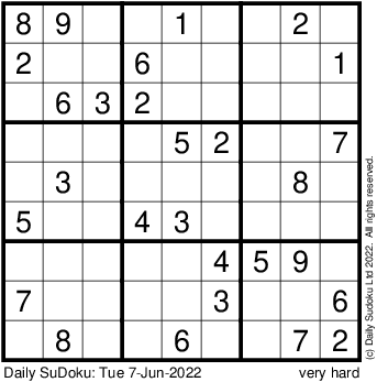 The Daily SuDoku: Tue 7-Jun-2022