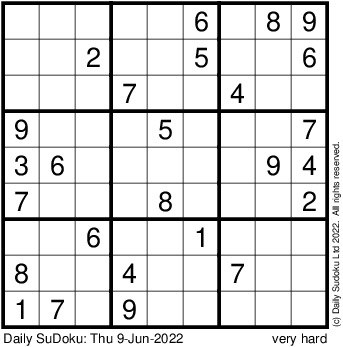 The Daily SuDoku: Thu 9-Jun-2022