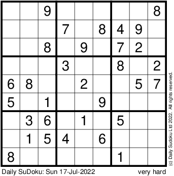 The Daily SuDoku: Sun 17-Jul-2022