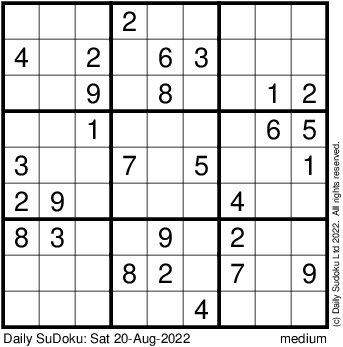 The Daily SuDoku: Sat 20-Aug-2022