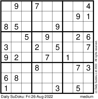 The Daily SuDoku: Fri 26-Aug-2022