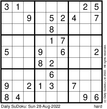 The Daily SuDoku: Sun 28-Aug-2022