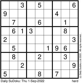 The Daily SuDoku: Thu 1-Sep-2022