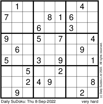 The Daily SuDoku: Thu 8-Sep-2022
