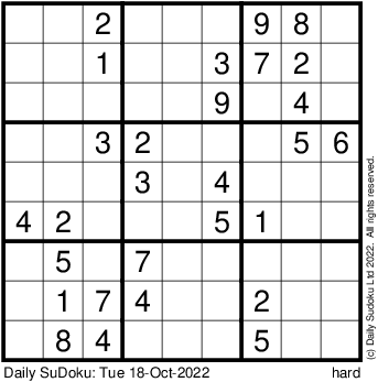 The Daily SuDoku: Tue 18-Oct-2022