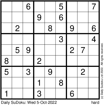 The Daily SuDoku: Wed 5-Oct-2022