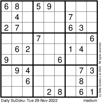 The Daily SuDoku: Tue 29-Nov-2022