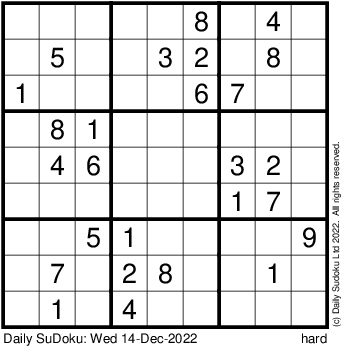 The Daily SuDoku: Wed 14-Dec-2022