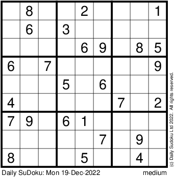 The Daily SuDoku: Mon 19-Dec-2022