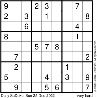 The Daily SuDoku: Sun 25-Dec-2022