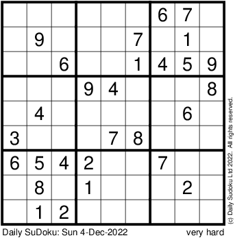 The Daily SuDoku: Sun 4-Dec-2022