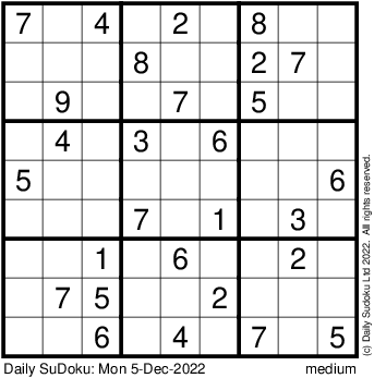 The Daily SuDoku: Mon 5-Dec-2022
