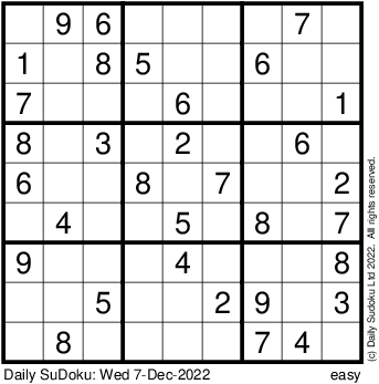 The Daily SuDoku: Wed 7-Dec-2022