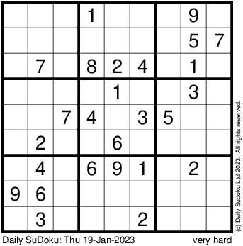 The Daily SuDoku: Thu 19-Jan-2023