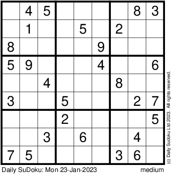 The Daily SuDoku: Mon 23-Jan-2023