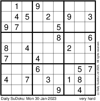 The Daily SuDoku: Mon 30-Jan-2023