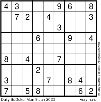 The Daily SuDoku: Mon 9-Jan-2023