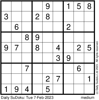 The Daily SuDoku: Tue 7-Feb-2023