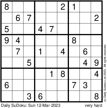 The Daily SuDoku: Sun 12-Mar-2023