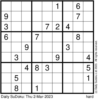 The Daily SuDoku: Thu 2-Mar-2023