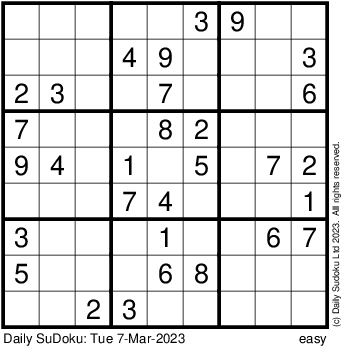 The Daily SuDoku: Tue 7-Mar-2023