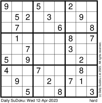 The Daily SuDoku: Wed 12-Apr-2023