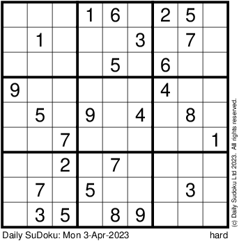 The Daily SuDoku: Mon 3-Apr-2023