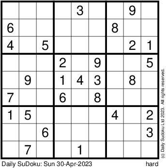 The Daily SuDoku: Sun 30-Apr-2023