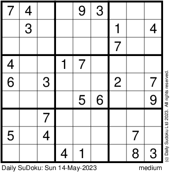 The Daily SuDoku: Sun 14-May-2023