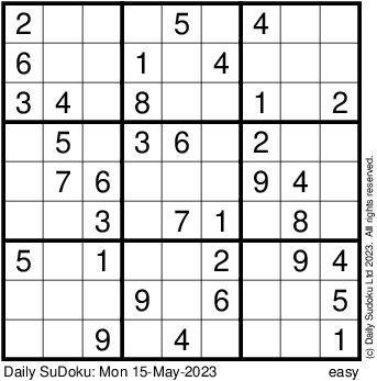 The Daily SuDoku: Mon 15-May-2023