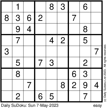 The Daily SuDoku: Sun 7-May-2023