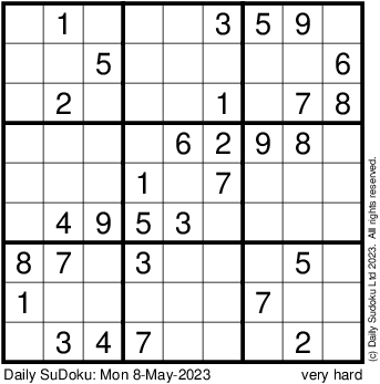 The Daily SuDoku: Mon 8-May-2023