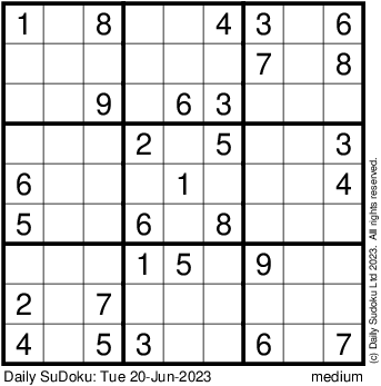 The Daily SuDoku: Tue 20-Jun-2023