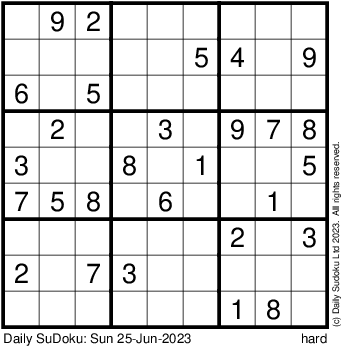 The Daily SuDoku: Sun 25-Jun-2023