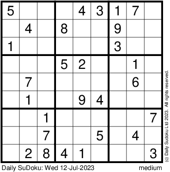 The Daily SuDoku: Wed 12-Jul-2023