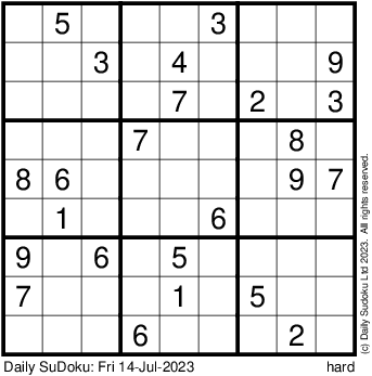 The Daily SuDoku: Fri 14-Jul-2023