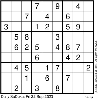 The Daily SuDoku: Fri 22-Sep-2023