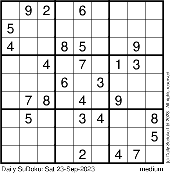 The Daily SuDoku: Sat 23-Sep-2023