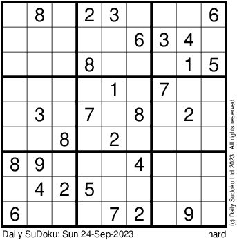 The Daily SuDoku: Sun 24-Sep-2023